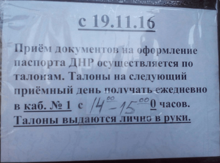 На Донбассе желающих получить «паспорт» ДНР заставляют загодя получать талоны.