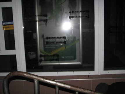 Відзначається, що активісти заклеїли вітражі, двері банків, а також самі банкомати наклейками з тегом #RUSBANKOVER. Крім того, невідомі залили монтажною піною банкомати, "щоб припинити окупантами надання банківських послуг українцям".