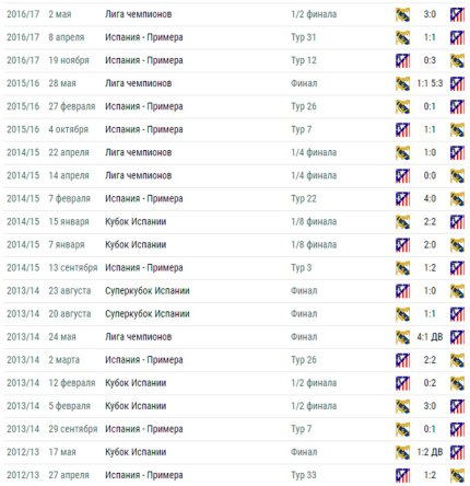 13:49. чи зможе "Атлетіко" переписати власну історію, дізнаємося сьогодні ввечері. Раніше "індіанці" ніколи не вигравали протистояння після поразки у першому матчі з різницею у 3 м'ячі. Так само і Королівський клуб раніше ніколи не програвав дуель після перемоги у першій грі з рахунком 3:0