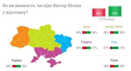 Як показали результати опитування, більше половини його учасників (56%) вважають відставку Шокіна малоймовірною. Найменше вірять в те, що генпрокурор залишить займану посаду жителі сходу країни (27%).