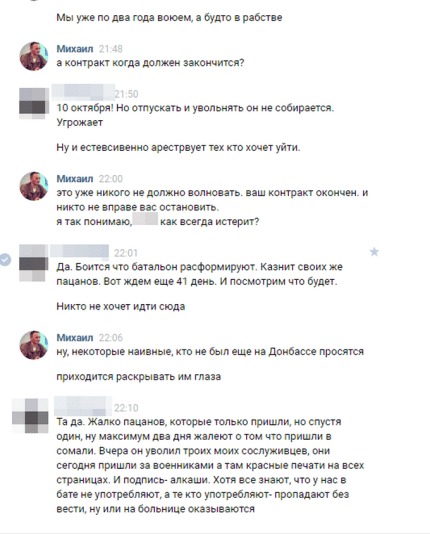 Інші блогери в коментарях підтвердили слова бойовика "Сомалі". "На цьому тижні він намагається тримати себе в руках. Дуже багато хто не хоче продовжувати контракт, а в жовтні приходить для третини час. І ця третина - сама боєздатна. Вихідних став більше давати, відпустки. Правда, люди все одно біжать. Рукоприкладство процвітає: хоч рядового, хоч зама. Інших подробиць мене попросили не розповідати", - написав бойовик "Червонець", що виступав на стороні терористів.