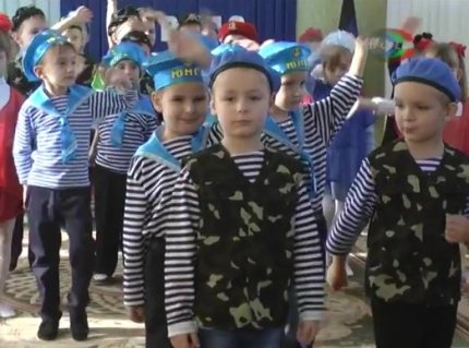 В одному з дитсадків окупованого бойовиками Харцизька Донецької області для заходу вихованців одягли в камуфляжну форму і вчили їх пісням про ВДВ.