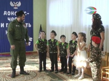 Вихователі дитячого садка "Червона шапочка" організували захід "Донбас - честь і гордість народу", який відвідав чинний бойовик незаконних збройних формувань так званої "армії ДНР". Для присутніх вихованці дитсадка в камуфляжній формі виконали пісні про моряків і військових повітряно-десантних військ (ВДВ).