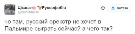Цікава Руссофобія: "чо там, російський оркестр не хоче в Пальмірі зіграти зараз? А чого так?"
