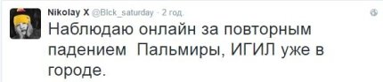 Nikolay X: "Спостерігаю онлайн за повторним падінням Пальміри, ІГІЛ вже в місті".