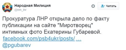 "Прокуратура ЛНР відкрила справу за фактом публікації на сайті "Миротворець" інтимних фото Катерини Губаревої", - йдеться в повідомленні.