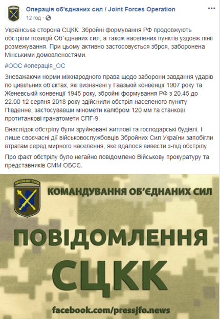 Про факт обстрілу було негайно повідомлено Військову прокуратуру та представників СММ ОБСЄ.