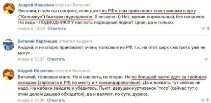 Зокрема в одній з соцмереж сепаратисти скаржаться на те, що навчати бойовиків ДНР в артилерію банди "Кальміус" Росія відправляє колишніх підводників, які їдуть на Донбас за потрійним окладом.