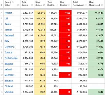 Кількість хворих на коронавірус в Європі 30 червня (фото - скріншот worldometers.info)