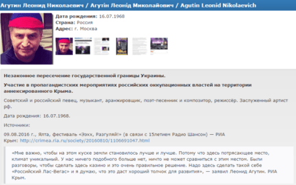 Російський співак та музикант Леонід Агутін потрапив до бази даних центру "Миротворець".