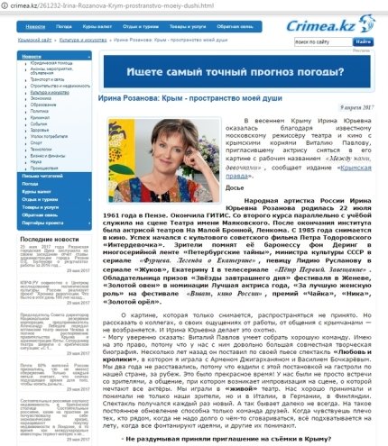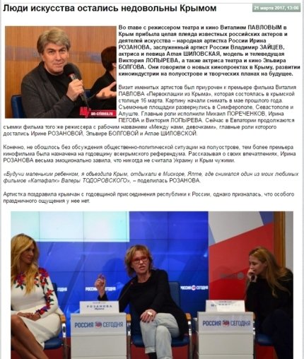 "У весняному Криму Ірина Юріївна опинилася завдяки відомому московському режисерові театру і кіно з кримським корінням Віталієві Павлову, що запросив актрису знятися в його картині", - уточнили на сайті "Миротворця".
