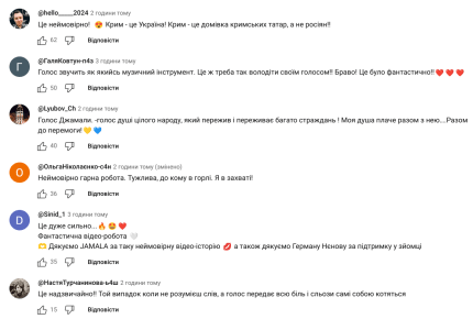 Це витвір мистецтва! Неймовірно змістовний кліп, геніальний спів Джамали , ця робота високої якості!.