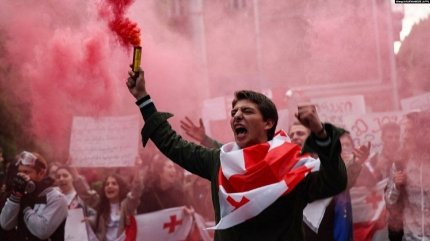 Students of various universities of Georgia also joined the action. The day before, students of more than 30 universities across the country announced a general strike. The demonstrators carry EU and Georgian flags and chant: "No to the Russian law!", "Yes to Europe!", writes Sova.