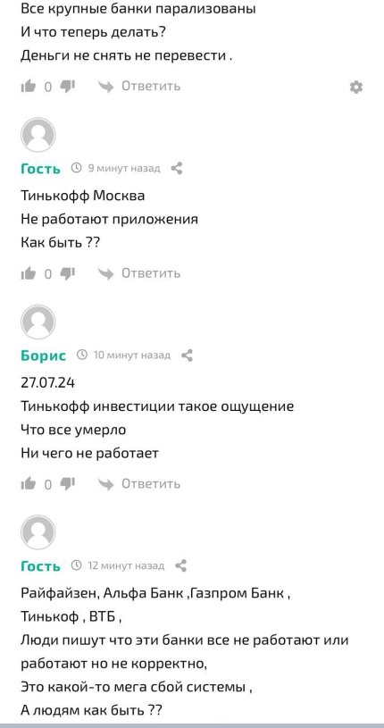 The Russian bank "Dom.RF" was added to the affected VTB Bank, Alfa Bank, SebrBank, Raiffeisen Bank, RSHB Bank, Rosbank, Gazprombank, T-Bank and iBank. The operation of the brokerage application "T-Investments" has also been blocked. Since the Russian Federation raised key rates to 18% on July 26, it is impossible to carry out any banking operations due to the lack of access to services, which leads to the loss of funds for the population.