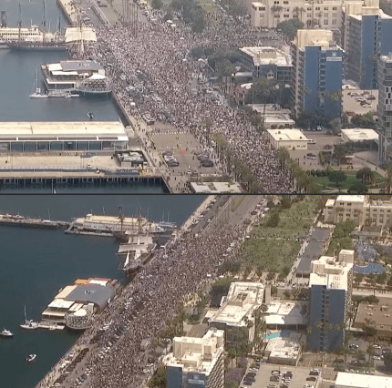 The rally in Atlanta, designed for 5,000 people, quickly reached its capacity, with thousands gathering behind barriers to hear speakers in front of the state Capitol building. Officials in Seattle estimated that more than 70,000 people attended the largest rally in the city's downtown.