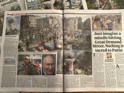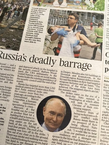 The Russian missile attack on "Okhmatdyt" is on the UK media front pages
