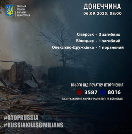 Over the past 24 hours, September 5, Russian occupiers killed six more civilians in the Donetsk and Kherson regions, local OVA reports.