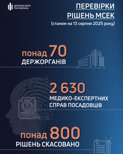 As Oleksiy Sukhachev noted, inspections of more than 70 state bodies and 2,630 medical expert files of officials are still ongoing.