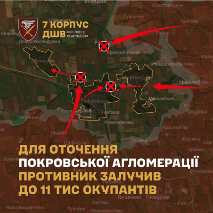 On October 29, the 7th Rapid Reaction Corps of the DSHV officially confirmed that the Russian invaders had deployed about 11,000 personnel to surround the Pokrovskaya agglomeration.