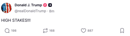 High stakes!!! — that's exactly what the head of the White House wrote on his own social network.