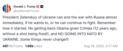 Remember how it all began. No return of Crimea, which Obama gave away (12 years ago, without a single shot being fired!), and no Ukraine joining NATO. Some things never change!