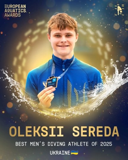Український стрибун у воду Олексій Середа здобув титул найкращого спортсмена Європи 2025 року за версією European Aquatics.