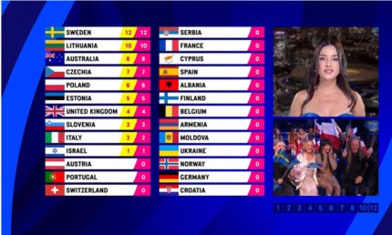 Україна не отримує балів від Португалії та Ховатії. Трійка лідерів- Швеція, Італія Ізраїль.