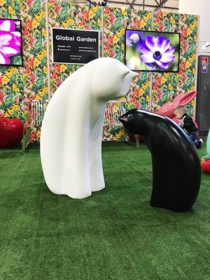 Арт-об’єкти у вигляді пташок та котиків були представлені на виставці Flower Expo Ukraine у столичному МВЦ.