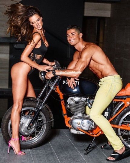 Модель Алессандра Амбросіо (Alessandra Ambrosio) и футболіст Кріштіану Роналду (Cristiano Ronaldo) в фотосесії для журналу GQ (лютий 2016).