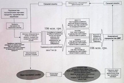 Віталій Купрій також надав схему передбачуваного розкрадання коштів, у якій бере участь Володимир Дубинський, а також заступник Бориса Філатова з питань житлово-комунального господарства Михайло Лисенко.