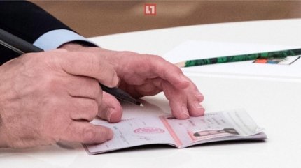 На прохання російського лідера актор поставив свій підпис на першій сторінці паспорта чорною гелієвою ручкою.