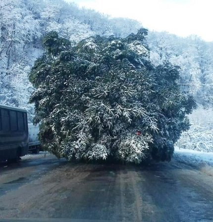 У суботу, 2 грудня, на Прикарпатті зрубали головну ялинку країни, яка повинна була бути доставлена до Києва 4 грудня. Через негоду новорічна красуня потрапила у справжню пригоду, в зв'язку з чим її траспортування сповільнилося.