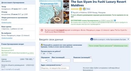 Наймодніша "вілла на воді", за інформацією кореспондента, коштує $26 600 за тиждень, до яких треба додати ще $6 200 податку і $1 500 за трансфер, що в загальному підсумку перевищить 900 000 гривень, .