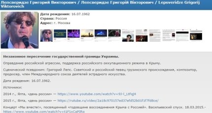 Відомий російський співак Григорій Лепс потрапив до бази центру "Миротворець".