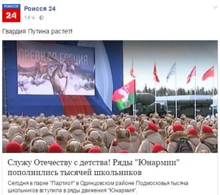 Нагадаємо, Міноборони РФ запустило проект "Юнармія" близько року тому для "патріотичного" виховання дітей і підлітків.