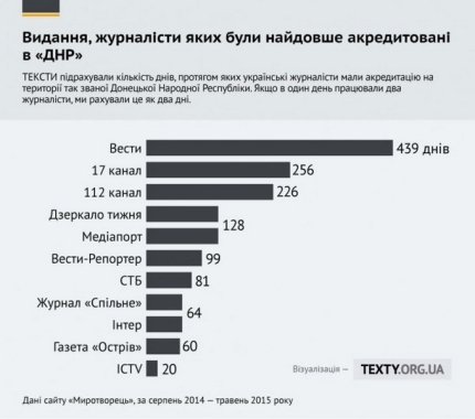 Видання Texty опублікувало статистику по українських виданнях, журналісти яких отримали акредитацію на окупованій території.