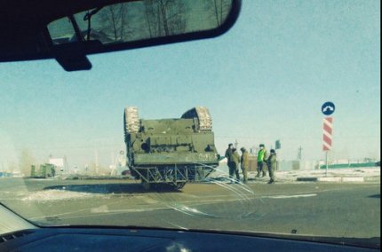 Повідомляється, що інцидент стався на виїзді з Чити, яка знаходиться неподалік Китаю: багатотонна бойова машина зірвалася з тягача і перекинулася прямо на дорозі.