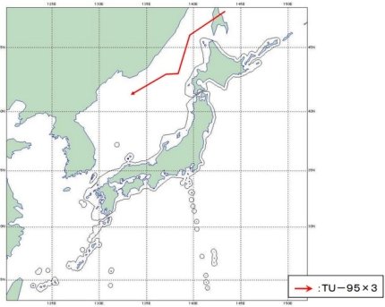 Відзначимо, три російські бомбардувальники наблизилися до японського кордону з півночі, пролетіли над Японським морем, після чого два з них попрямували в бік міста Окінава. Російські літаки облетіли країну і ввечері повернулися в Росію.
