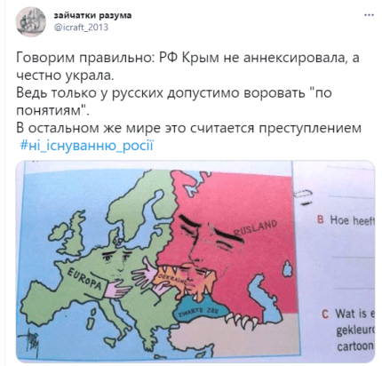 У відповідь українці дали зрозуміти, що не терпітимуть образ і залякувань з боку Росії, бойовики якої щодня вбивають українських військових на Донбасі і ведуть війни в багатьох країнах світу.
