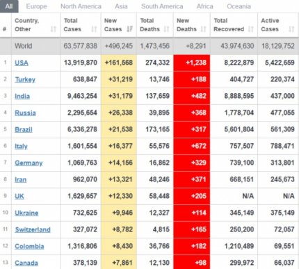 Що важливо розуміти, станом на ранок 1 грудня Україна опинилась на 4 місці серед країн Європи за кількістю нових випадків захворювання коронавірусом. Наразі випереджають нашу країну Італія, ФРН та Велика Британія. За словами фахівців, у цих трьох країнах спостерігається зменшення нових випадків захворювання. Попри те те, що протягом минулої доби в Україні виявили значно менше інфікованих, ніж раніше, проте все одно ми обійшли Польщу, Іспанію, Швейцарію. Загалом же в Європі за це час підтвердили близько 125 тисяч заражень. Серед країн світу наша держава займає 10 позицію, залишивши позаду Колумбію, Канаду, Мексику та інші держави. За числом летальних випадків у світовому рейтингу Україна на 22 місці, серед країн Європи – на 13 позиції.