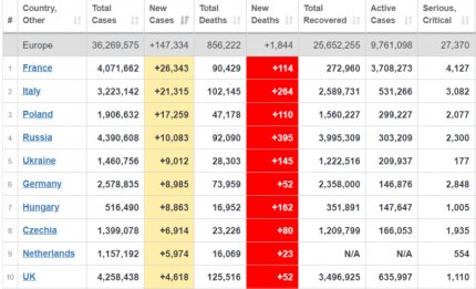 Кількість хворих на коронавірус в світі також продовжує рости - станом на 15 березня захворіло 120 млн осіб. За минулу добу в світі діагностували 364 тисячі нових випадків. Більше кількість хворих зростає в США, Бразилії, Індії, Франції, Італії та Польщі. Україна у світовій статистиці по щоденному приросту хворих знаходиться на 9-му місці, серед країн Європи - на 5 місці. На сьогоднішній день майже 20 млн осіб продовжують хворіти, померли від ускладнень, викликаних COVID-19, більш 2,664 млн людей, вилікувалися - 97 млн пацієнтів.