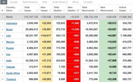 Кількість захворювань в світі на 20 серпня