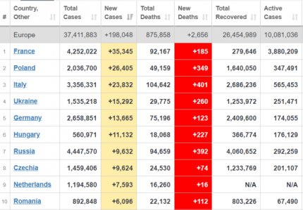 Кількість хворих на коронавірус в світі також продовжує зростати - станом на 21 березня захворіло 123 млн осіб. За минулу добу в світі діагностували 507 тисяч нових випадків. Більше кількість хворих зростає в Бразилії, США, Індії, Франції та Польщі. Україна у світовій статистиці по щоденному приросту хворих знаходиться на 8 місці, серед країн Європи - на 4 місці. На сьогоднішній день майже 22 млн осіб продовжують хворіти, померли від ускладнень, викликаних COVID-19, більш 2,722 млн осіб, вилікувалися - 99 млн пацієнтів.