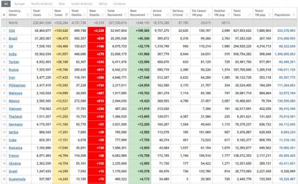 Так, у Сполучених Штатах зафіксували понад 133 тисячі, у Британії – понад 34 тисяч та Індії – майже 32 тисячі нових інфікувань.