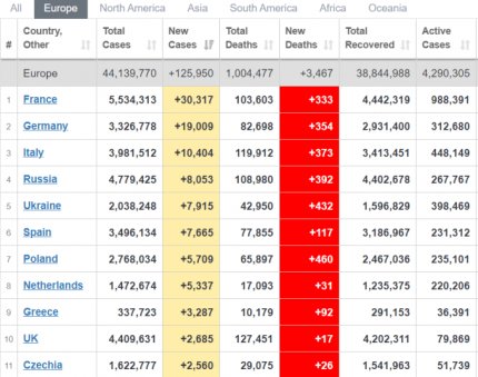 Кількість хворих на коронавірус в Європі 28 квітня (фото - скріншот worldometers.info)