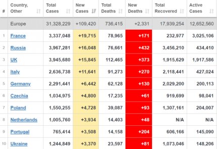 Кількість хворих на коронавірус в світі продовжує зростати - станом на 8 лютого захворіли майже 107 млн осіб. За минулу добу в світі діагностували 345 тисяч нових випадків. Більше кількість хворих зростає в США, Бразилії, Франції та Росії. Україна у світовій статистиці по щоденному приросту хворих знаходиться на 23 місці, серед країн Європи - на 10 місці. На сьогоднішній день майже 26 млн осіб продовжують хворіти, померли від ускладнень, викликаних COVID-19, більш 2,326 млн людей, вилікувалися - 78,5 млн пацієнтів.