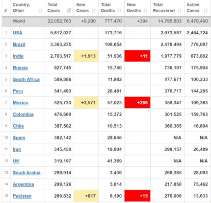 Кількість хворих на коронавірус в світі також стрімко зростає - станом на 18 серпня захворіли вже понад 22 млн осіб. За останню добу в світі діагностували майже 200 тисяч нових випадків. Більше кількість хворих зростає в США, Бразилії та Індії. У Росії, яка знаходиться на четвертому місці в світі по захворюваності COVID-19, на сьогоднішній день кількість хворих перевищує 927 тисяч. Україна у світовій статистиці по захворюваності на коронавірус знаходиться вже на 31 місці.