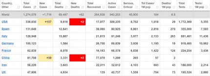 На ранок 6 квітня число хворих на коронавірус в світі досягає майже 1,3 мільйона осіб. На першому місці по захворюваності знаходяться США - там підтверджено 336 830 випадки зараження. На другому місці Іспанія - 131 646 випадків зараження. В Італії - 128 948 хворих, в Німеччині - 100 123, у Франції - 92 839 хворих. Від коронавіруса померли 69 487 осіб, 264 838 пацієнтів медикам вдалося вилікувати.