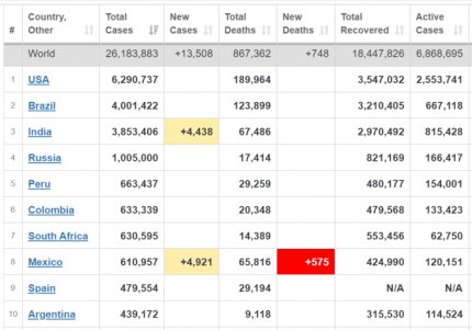 Кількість хворих на коронавірус в світі також рекордно зростає - станом на 3 вересня захворіли вже понад 26 млн осіб. За останню добу в світі діагностували понад 285 тисяч нових випадків. Більше кількість хворих зростає в США, Бразилії та Індії. У Росії, яка знаходиться на четвертому місці в світі по захворюваності COVID-19, на сьогоднішній день кількість хворих перевищує мільйон випадків. Україна у світовій статистиці по захворюваності на коронавірус знаходиться вже на 25-му місці.
