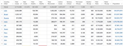 Варто зазначити, що за весь період пандеії у світі захворіли 9 млн 714 тис людей: 491 тис осіб померли та 5 млн 250 тис людей змогли перемогти хворобу. 25 червня в світі діагностували 180 111 заражень COVID-19, померло 5148 пацієнтів. В США за минулу добу діагностували 40 184 випадків захворювання коронавірус, в Бразилії 40 673, в Індії 18 185, Росії 7113, ЮАР 6579 та інші. Нові випадки захворювання виявили в 146 країнах світу. 24 червня в світі діагностували 173 061 заражень COVID-19, померло 3338 пацієнтів. 23 червня в світі діагностували 164 062 зараження COVID-19, померло 5465 пацієнтів.